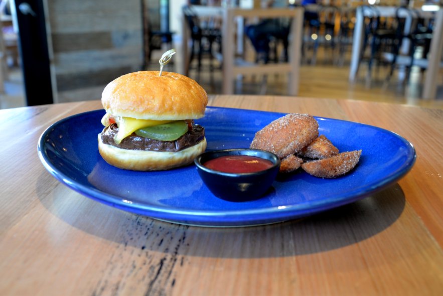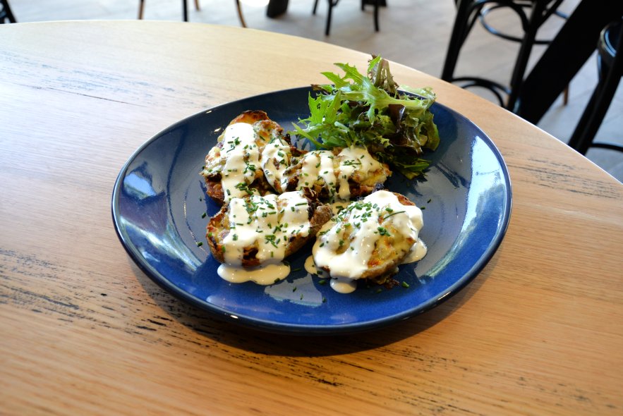 Upon entering The Pickled Duck you notice the large light-filled dining area which leads out to a small beer garden overlooking Civic Park. Whilst the name screams Asian to me, it is the ducks that roam Civic Park that inspired the name and I can only assume that ‘pickled’ is in relation to the nearby Modbury Plaza Hotel, or perhaps the adjoining cellar and bottle shop. The main dining area is decked out in simplistic, yet stylish matching wooden tables with complementary black chairs. The wooden theme extends to the floorboards and panelled ceiling, with downlights and some eye-catching pendant lighting completing the picture. A marble bar, together with a large wood-fired pizza oven in view from the entrance, runs the length of the café and makes for a focal point.