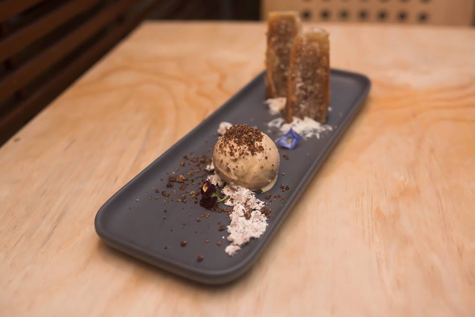 As no Greek feast is complete without dessert, but being well and truly full to the brim, we opted to share a dessert; the Bakalava. Given that every other dish that arrived at our table was not your standard Greek dish, we expected nothing less from dessert and of course we weren’t disappointed. The beautifully presented Bakalava log consisted of a spicy almond and walnut mix with warm honey syrup, Metaxa coffee soil and pistachio ice cream. The pistachio flavoured ice cream was a great accompaniment to what can be a very pedestrian Greek sweet pastry; never again will I eat bakalava without ice cream. More importantly the bakalava wasn’t sickly sweet like some can be and had just the right amount of honey syrup. The subtle coffee flavour afforded by the Metaxa (a Greek liqueur) flavoured soil added a nice contrast to the nutty flavours of the ice cream and bakalava. This dessert sets a standard that makes me regret not being able to try (for fear of exploding) the other five desserts on offer at Meraki.