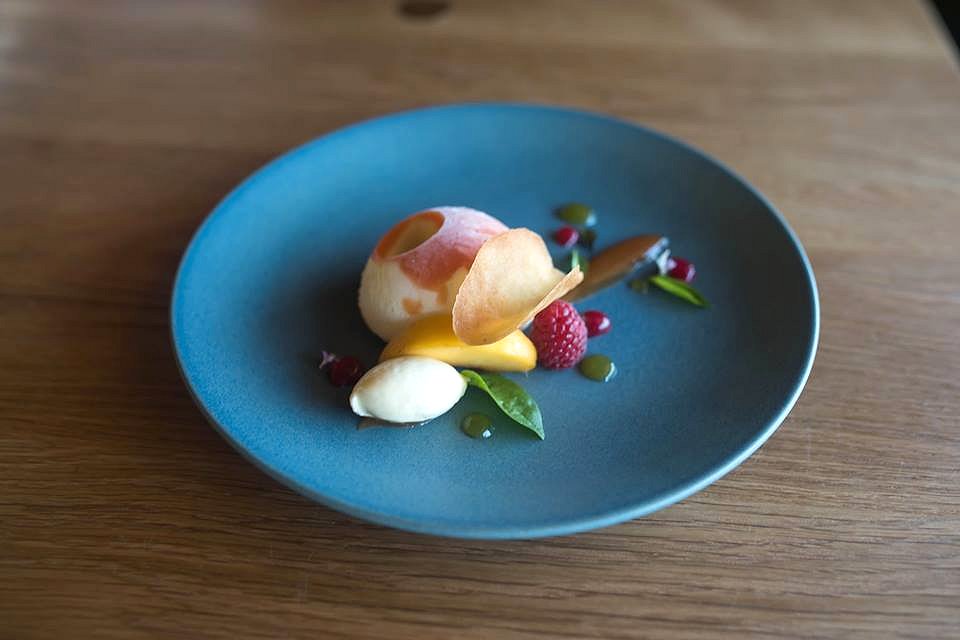 Finally, the desert and most likely dish of the day, the Peach semifreddo, raspberry, white chocolate and basil. Bursting with flavour, you are transported to the garden outside. You can taste the juiciness of the freshly picked peach, the tang of the raspberries, only enhanced by the addition of the basil. The white chocolate adds the creaminess and sweetness needed to make magic on a plate.