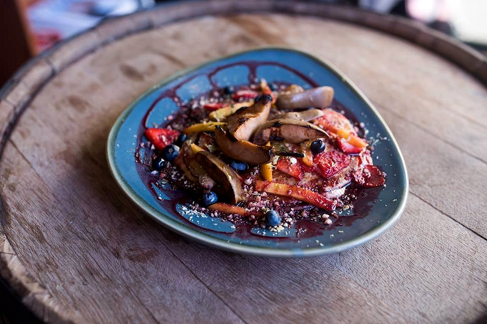 As of February this year Mama Jambo is the newest café to open up in the unique warehouse space (formerly Hello, Yes) on Eliza Street in the CBD. Jambo is Swahili for ‘hello’ and fittingly Mama Jambo offers modern Australian cuisine with an African twist. Mama Jambo is co-owned by Connie Fiala Mmadike, Caroline Mosha and Troy Bellchambers. Connie is married to a Nigerian and Caroline to a Tanzanian and it is through these partnerships from which the café draws its African inspiration. The fit-out boasts plenty of character and charm through the use of recycled material including refurbished vintage furniture, wine barrels and walls lined with repurposed shipping crates. Whilst Mama Jambo currently occupies a single level which can comfortably seat fifty people, there are plans to expand upstairs with a gallery space. Mama Jambo has a seasonal menu that cleverly incorporates African flavours with locally-sourced fresh ingredients. The menu at Mama Jambo provides breakfast, lunch and dinner options and everything in between (think coffee, cocktails and dessert). Adelaide Food Central was invited to sample the current autumn lunch menu before the upcoming winter menu (which I hear will comprise warm hearty stews) is rolled out.