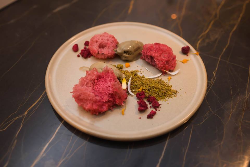 Finally, we had the Raspberry Sponge with pistachio caramel crumbs and licorice ice cream. The sponge was a raspberry flavoured bread centre. Its soft and delicate texture was a contrast to the smooth and creamy ice cream and the nutty crumbs. I did think the licorice seemed to overpower everything though.