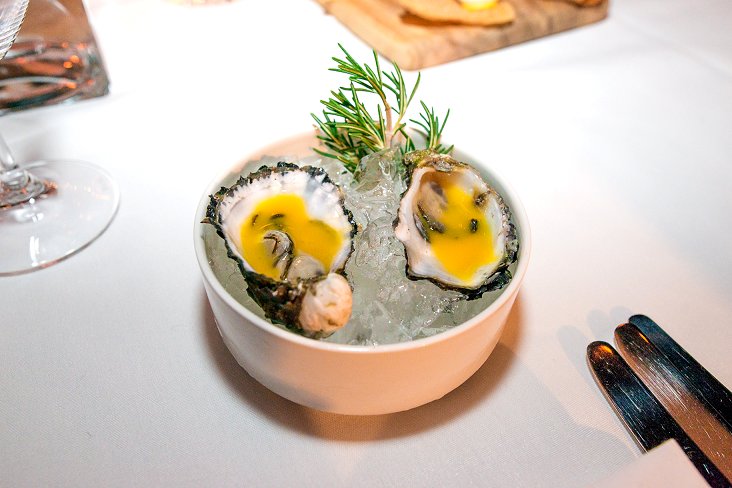 The dinner was hosted by Tasting Australia’s creative director Paul Henry and each course began with the winemaker introducing their single vineyard wine and telling stories of the wine’s origins and terroir. First up for the evening was Kate Laurie from Deviation Road (Adelaide Hills) introducing the 2009 Beltana Blanc de Blancs, which is produced using 100% Chardonnay grapes. Kate was paired with Lachlan Colwill from Hentley Farm Restaurant who created three appetisers to complement the sparkling. The first of these was the Smoky Bay oyster with passion fruit and rosemary. Given that I am not a fan of oysters (yes it’s the texture that gets me) I sold (well not really) my oyster to the highest bidder on the table and trust me there were quite a few! Guests loved how fresh and perfectly icy-chilled the oysters were and surprisingly the passion fruit, albeit a bit out there, was a huge hit. The second Colwill creation was the Quail egg with curry spice and quinoa. The quail egg, served on a papadum-like crispbread, was delightfully creamy with a subtle curry flavour. It was like a contemporary Indian appetiser and one that I wanted more of. The last appetiser from Colwill was the Hentley Farm Estate raised lamb with rye, blue cheese and onion; another tasty morsel that paired seamlessly with the fresh citrus and honey aromas of the Blanc de Blancs.