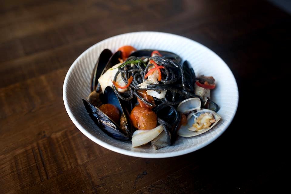 The Spaghetti Al Nero is a black squid ink style aglio olio with fresh local seafood, tomatoes and chilli. Distinguished by the long black strands of firm spaghetti, it’s the other elements that make this dish exciting. Generously served with mussels, clams and fish, you can taste the flavours of the ocean. The tomatoes add a subtle sweetness which brings all the elements together.