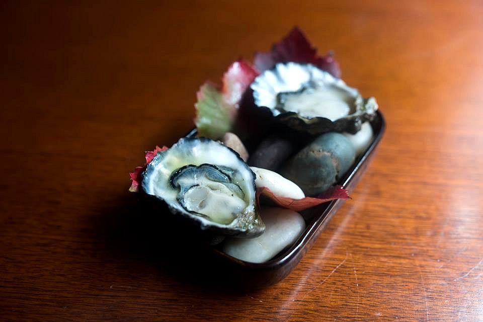 Nicely presented on a bed of pebbles was the Oysters with Yuzu Sauce. The oysters were smooth and silky in texture with a subtle saltiness that was balanced by the tart yuzu sauce.