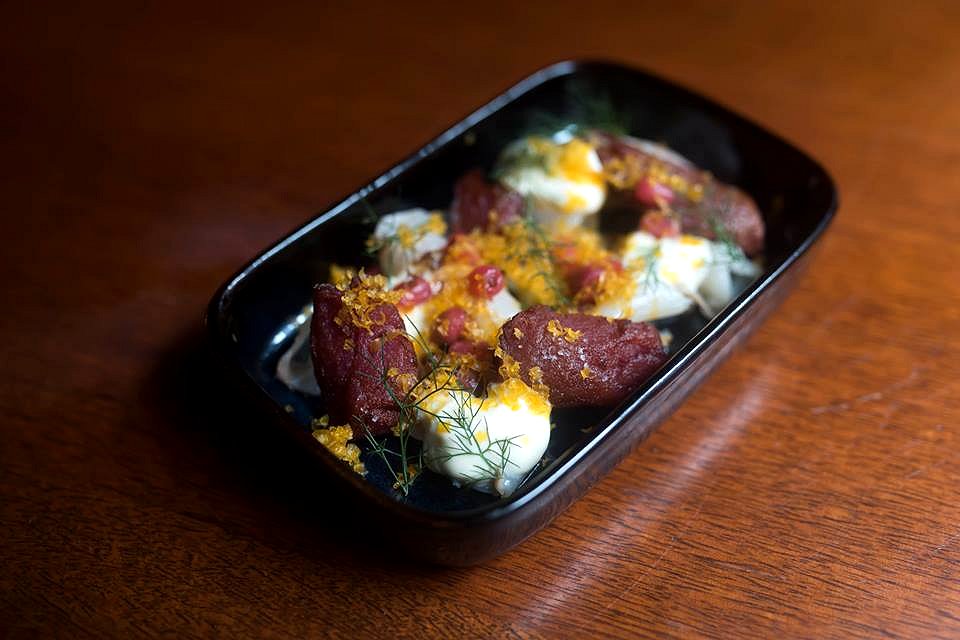 The Kangaroo Tail with native currant and beach greens was something to be admired with its presentation. The meat was compressed and simply fell apart. I found both the kangaroo and the beach greens to be slightly on the salty side, however, my dining partner loved it, so it comes down to personal preference.