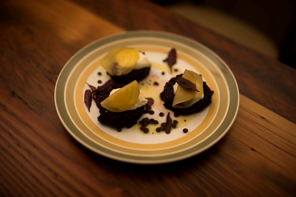 The other starter we had was the Beetroot and Quinoa Fritters with chevre, pickled beetroot, baby chard, orange and cracked pepper dressing. The fritters were soft and delicate, and matched perfectly with the chevre. The pickled beetroot provided a contrast in texture to the dish by adding a slight crunchiness, and its tangy flavour was balanced by the citrus dressing.