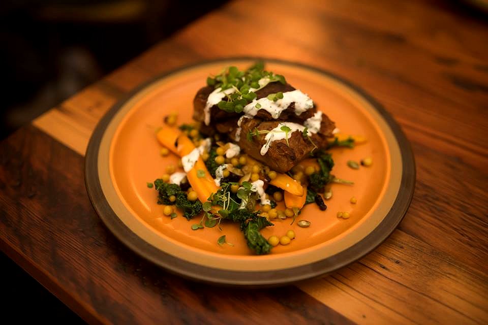 The first of the mains was the Moroccan Spiced Suffolk Lamb Shoulder with baby carrots, currants, almonds, pepitas, couscous, roasted lemon and yoghurt dressing. The lamb shoulder was soft and delicate, and you could taste the Moroccan spices throughout the meat. The carrots and couscous were slightly undercooked, but it was a tasty dish all round.