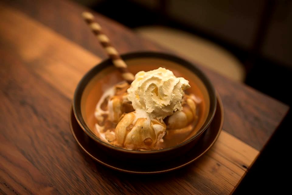 Last but not least was the Banana Chip Sundae with vanilla ice cream, salted caramel sauce and whipped cream. We love a good sundae and this really hit the spot. The dessert comes with a serving of 4 generously sized scoops of smooth and creamy vanilla ice cream. The banana chips add a crunchy texture as does the wafer stick, and the salted caramel slightly balances the sweetness of the ice cream.
