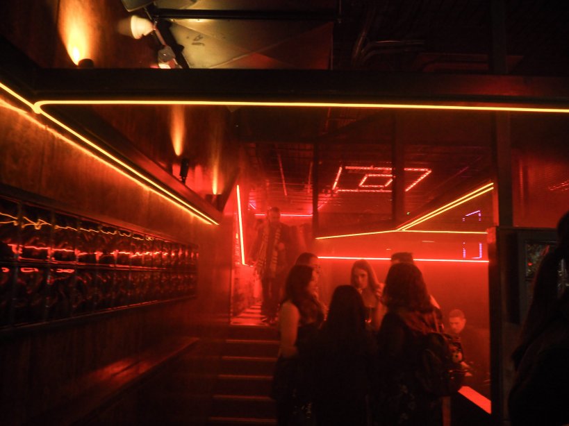 There is a small, intimate area designated for sitting, before walking up wooden paneled stairs onto the dance floor. Bright neon signs are placed all over the bar, from the ceiling to the walls. The bright reds, pinks and yellow hues glow with the exposed brick wall layout. One can only feel like they are in an abandoned warehouse turned funky 70’s club.
