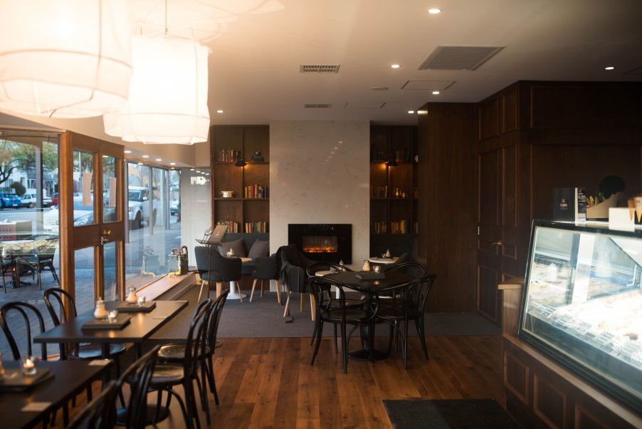 Walking into St. Louis North Adelaide, there is an immediate sense of warmth. A fireplace blazes in a corner, surrounded by cozy booths, a bookshelf, and small tables. The counter is an island surrounded by customers – this layout definitely gives a cosy, vintage Parisian feel.
