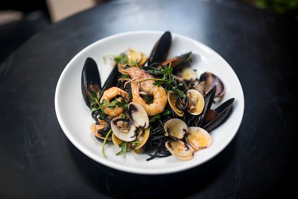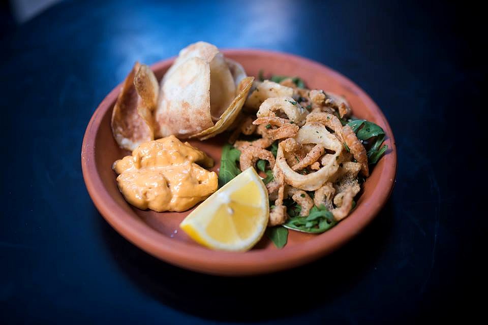We start off with the Fitto Misto which is a plate full of fried school prawns, calamari, fish, potato crisps and chilli aioli. The calamari and fish pieces are soft and delicate, and are fried to a light golden brown. All the other elements are simply crunchy, which makes this a perfect dish to go with a drink. The chilli aioli really packs some heat and will certainly warm things up during this cold weather.