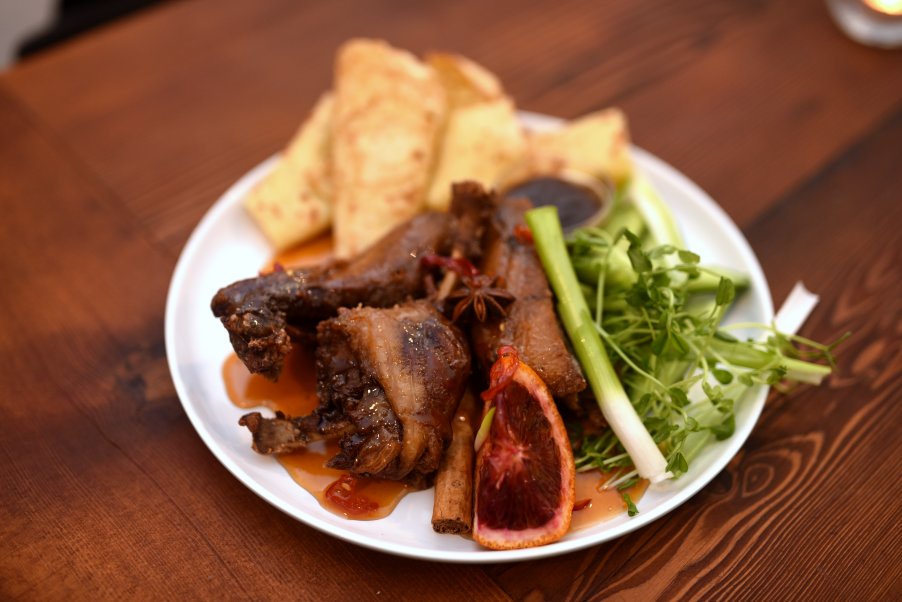The resounding favourite main plate was a take on Peking duck pancakes. The Crispy Tea Smoked Duck has been braised, smoked and then fried to crispy perfection and it shreds on the touch of a fork. It is smothered in a blood orange caramel sauce studded with star anise and cinnamon, ready to be packaged up in house made pancakes and the requisite hoi sin sauce and spring onion spears.
