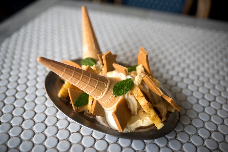 If you are looking for a sweet treat after your burger feast, then you must try the Sean’s Kitchen Pimped Softee. A cone of soft serve Golden North Ice cream is served on a plate and you guessed it – “pimped up” with imaginative ingredients. The flavours change regularly; we’ve seen milo, key lime pie, pavlova and sticky date. On this occasion we had pineapple soft serve, caramelised pineapple pieces, shards of caramelised white chocolate and chunks of homemade shortbread. A sure sign that summer is on the way!