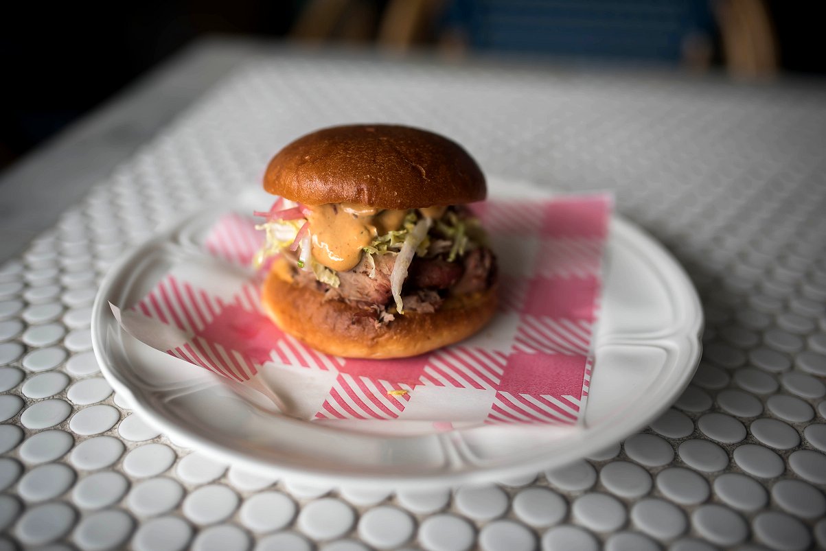 A generous helping of shredded pork is nestled on a bun with picked onions, slaw and jalapenos which give a delectable heat and depth to the Pulled Pork burger. A chipotle mayo binds all the southern flavours together. Some pork escapes the bun and tumbles onto the plate below followed by a drips of the delicious chipotle mayonnaise. This gives me the chance to enjoy the flavor of the meat that is cooked in the smoker that you can see across the road from the restaurant, puffing away on Station Road. It is rich, smoky and tender and I ensure that devour every fallen piece.