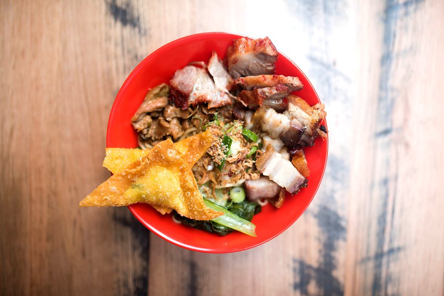 At Bakmi Lim, everything is made fresh in-house using locally sourced ingredients and cooked following the Lim’s family recipes. The ordering process is like being at Subway, where you select the type of noodles (traditional or spinach infused), the toppings (soy chicken and mushroom, roast pork, barbecue charsiu pork, tofu and mushroom, roast pork and barbecue pork), and the sides (crispy wonton, steamed wonton, steamed dumpings, beef meatballs). The beauty of this is that you get exactly what you want.