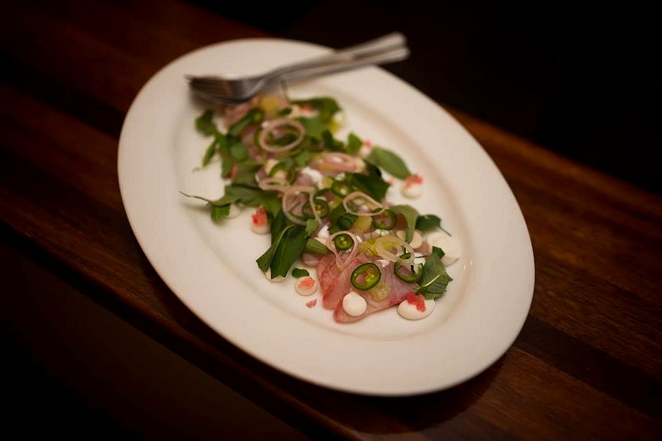 In our opinion, the dish of the night was the Kingfish Sashimi with coconut, Thai basil, green chilli and finger lime in a nuoc cham sauce. The kingfish slices had a smooth and delicate texture and were accompanied by a medley of fresh Asian herbs. The classic nuoc cham dipping sauce was well balanced and was something a Vietnamese Mum would be proud of. A deliciously light and refreshing dish that matches perfectly with the 2016 “Small Batch” Vermentino.