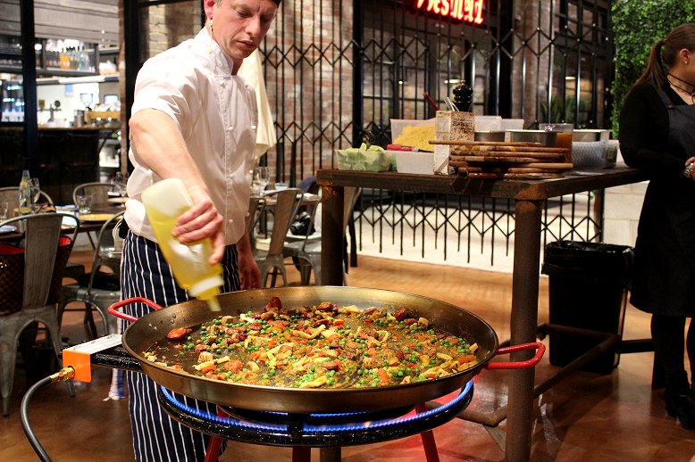 Chef Benjamin really showed off his knowledge and skills in Paella making and the end result was fantastic. Guests were handed aprons and a knife were put to work straight away, chopping the Onion, Tomato and Chorizo. We then watched on as Chef Benjamin seared the beautiful Chorizo along with Prawns and Squid. The aromas which filled the room were amazing. This was then removed from the pan as other ingredients were added along with Saffron infused gluten free rice which was precooked to speed up the cooking process.