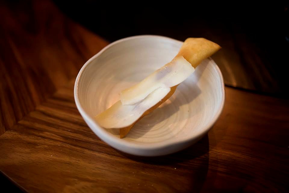 Next were the KI Scallop with white aspen and sea blight. The scallops were still alive prior to cooking so you can’t get fresher than that. The scallop was firm and juicy, and the subtle orange flavour from the white aspen was balanced by the saltiness of the sea blight.