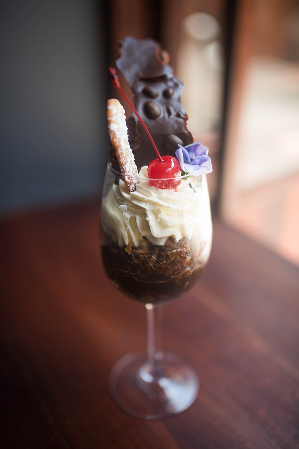 The Cafe Chocolate Liegeois is a dessert made from chocolat de noir sauce, spiced rum, single origin coffee granita, house made dark chocolat ice cream and nougatine. The dessert is very rich and chocolatey with varying textures with each bite. The granita gives you a nice coffee hit, just like an Espresso Martini would.