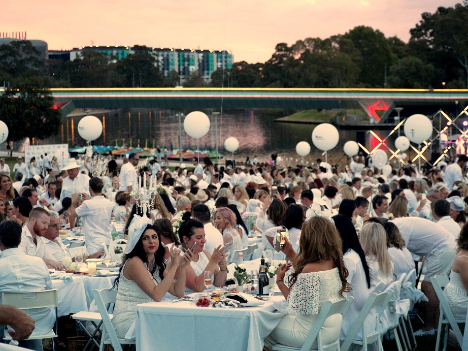 Adelaide was a spectacle of white last night for Diner En Blanc’s annual all white dinner party. Celebrating their 4th year of involvement with the event, hundreds gathered in Elder Park next to the Torrens River for a night of wine, food and spectacular live music.