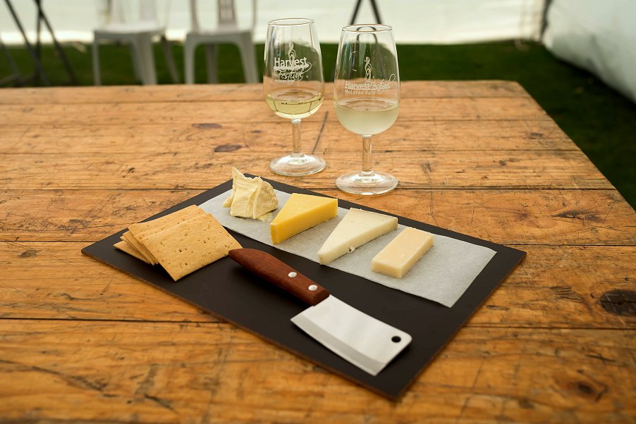 The Wine and Cheese Master Class at Harvest Festival was run by Cheese-A-Holics and Gemtree Wines. Each participant was given a small board and knife, along with generous portions of four cheeses and crackers.
