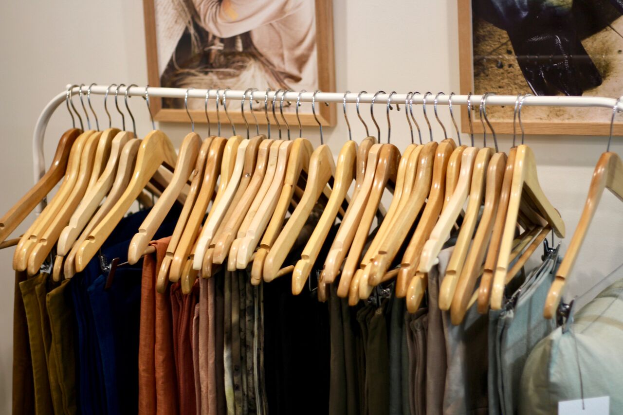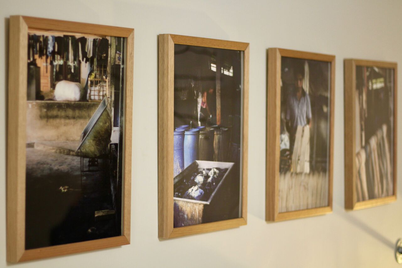 The shop, with a welcoming frontage of wooden furniture and soft textile towels and cushions, with wall’s adorned with framed photographs of Samia’s time in Tarum – a zero-waste workshop in Ubud, Indonesia – where her first line of textiles were dyed.