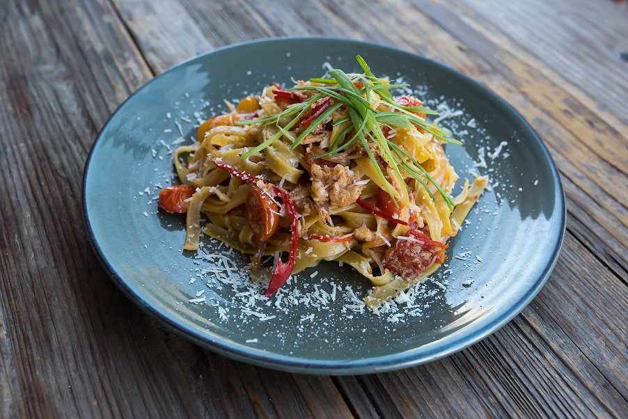 First we tried the Drunken Crab Pasta; house made saffron fettuccini, Spanish onion, chilli, tomato & blue swimmer crab flamed in vodka with grana padano. Off the top it was easy to tell this pasta was homemade, it had the distinct crinkles throughout that you can only get from homemade fettuccini, and it was cooked perfectly al dente. The ‘sauce’ was not really a sauce at all, it was very clean which kept it quite light and allowed the swimmer crab to stay center of the dish, which was also perfectly paired with the occasional sweet burst of cherry tomatoes.