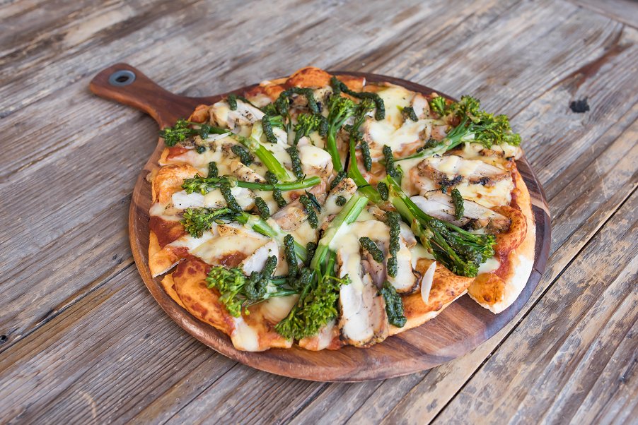 The last pizza for the taking was the most fascinating of all! Boasting a BBQ sauce base, with Lemon Pepper Chicken, broccolini and kale pesto on top. The chicken was tender while the broccoli provided a splendid crunch, and after a bite or two the pepperiness of the lemon chicken really hit quite pleasantly. The BBQ sauce base added a tangy hint, and overall it was just an excellent and unexpected combination, one we would definitely order again.