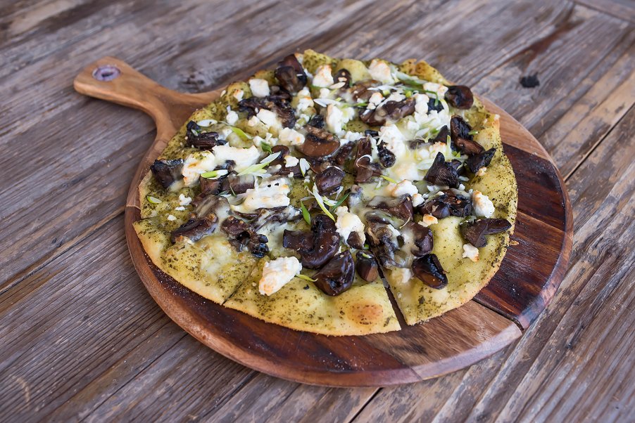 Next up was the first of three whole pizzas! We were truly spoilt. On first glance the bases were wonderfully thin, just as we like, and the toppings and colours were deliciously intriguing. The first was the Mushroom, and mushroom is one of my absolute favourites. Starring alongside in toppings was locally made woodside chevre, and a base of pesto herb oil. The cheese was salty and smooth and went so well with the subtlety of the mushroom, and the sliced spring onions on top were a great addition to aftertaste.