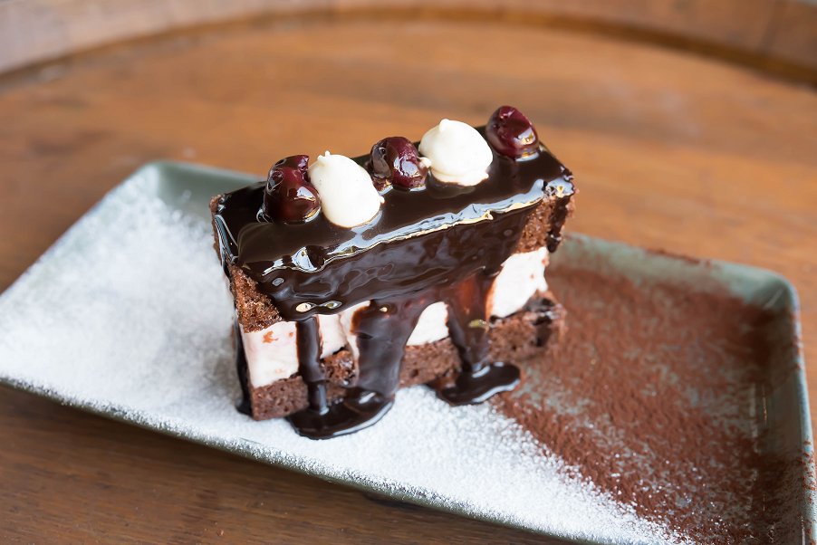 Much to our delight, our tasting did not stop there! We were surprised with the addition of three mind-blowing desserts. First was the EoN Ice Cream Sandwich, and get ready for it. With a Jack Daniel’s and Coke spongecake, wild cherry ice cream and chocolate ganache, this dessert was exciting just to look at. The sandwich held together so immaculately, even with the tinge of the heat, even under the eager pressure of our dessert spoons, it was perfect. The sponge was amazing, an excellent crumb, moist but not too dense, while the ice cream was creamy with the bursts of cherry throughout. Individually or in one bite, every part was truly awesome.