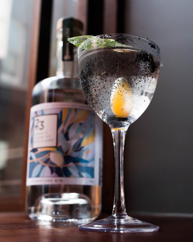 Described by the mixologist as “a weird baby conceived by the salty dog and the dry martini”, this drink is 2 cocktails in one! ‘Signature Gin’ from 23rd Street Distillery is served in a glass rimmed with soft black Cyprian rock salt. The gin, sourced from Renmark, is stirred down with Fig & Cinnamon bitters from Melbourne Company Mister Bitters. Now the part where things get fancy – a molecular technique called reverse spherification is used to create a jellified ball of fresh mandarin, ruby red grapefruit and navel orange. This complements the mandarin aroma of the Signature Gin. Garnished with a spear of coriander infused rock candy which you can use to pop the sphere, releasing the citrusy filling. There is also the option to submerge the spear in the drink in order to dissolve the sugar and transform the drink. A unique way to tailor the beverage to your own liking.