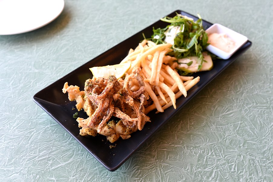 Lemon Pepper Calamari was up next; served with shoestring fries and rocket and parmesan salad, it was an awesome beachside meal. You can’t go wrong with the combination of peppery rocket and sharp parmesan, and the calamari was beautifully seasoned. The herbs were deliciously strong in the lemon pepper flour, and there was a nice vinegar-like tang in the aftertaste.