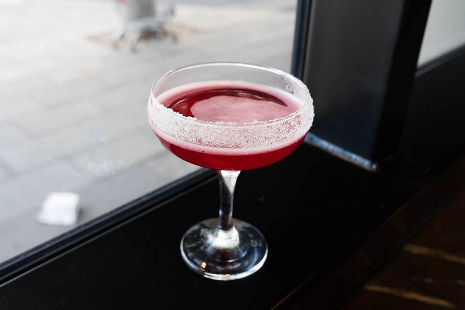 The last cocktail was Enoch’s Empire – Martell Vsop and Grand Marnier, lemon juice and grenadine. This cocktail is a bright pink drink with a rim of sugar around the glass. As the cocktail was a lively colour it did look like it would be quite easy to drink but it was the strongest of the bunch. The bitter orange flavour coming from the Grand Marnier and the lemon juice complimented the slightly sweet cognac. These acidic and sweet flavours paired together made an overall satisfying cocktail.