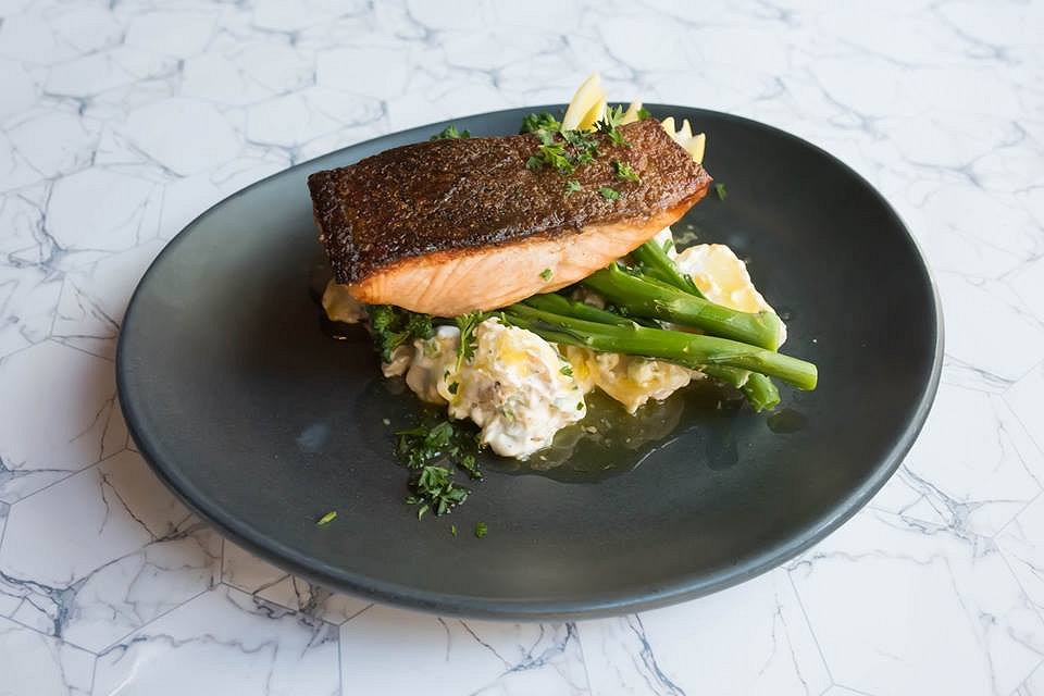 Next was the Atlantic Salmon, oven baked with fennel and potato salad, steamed broccilini finished with an herb lemon and butter sauce. I am actually not a big fan of whole fish, but this was the highlight dish of the day. The crispy skin on the salmon was salty and delicious. Paired with the creamy potato salad and the crunchy, fresh broccolini this dish was sensational. The fish was cooked to perfection, portraying an opaque pink colour and the flesh pulling off the fish easily.