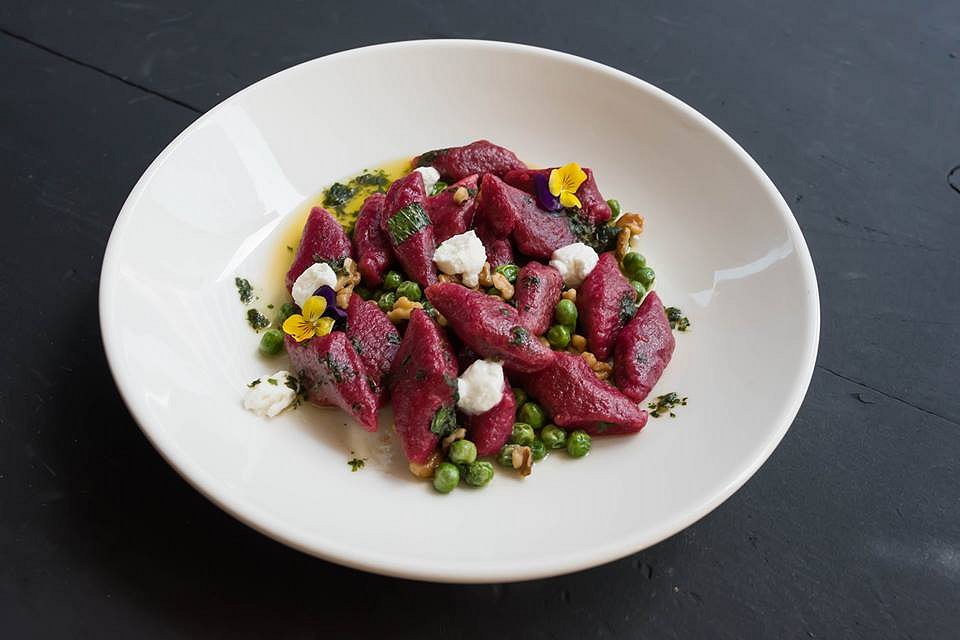 Then onto the Gluten Free Beetroot Gnocchi with peas, goats curd, walnuts in butter. This dish really caught my eye with the bright red and thick gnocchi pieces. I also really enjoyed the light and subtle sauce that was paired with the gnocchi; olive oil with beautiful soft goats cheese, crunchy walnuts and fresh peas. All these subtle flavours merged together complimented the slightly sweet and dense beetroot gnocchi.