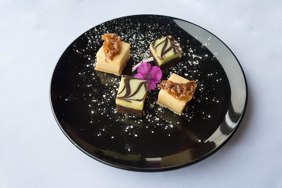 Festival of Food diners will finish off with the Petit Fours. At the top left is the Cognac Mille Feuille. A lovely bite sized custard slice with a distinctly adult flavour. The other is a Peppermint Slice. A rich morsel of minty goodness that will freshen your breath.