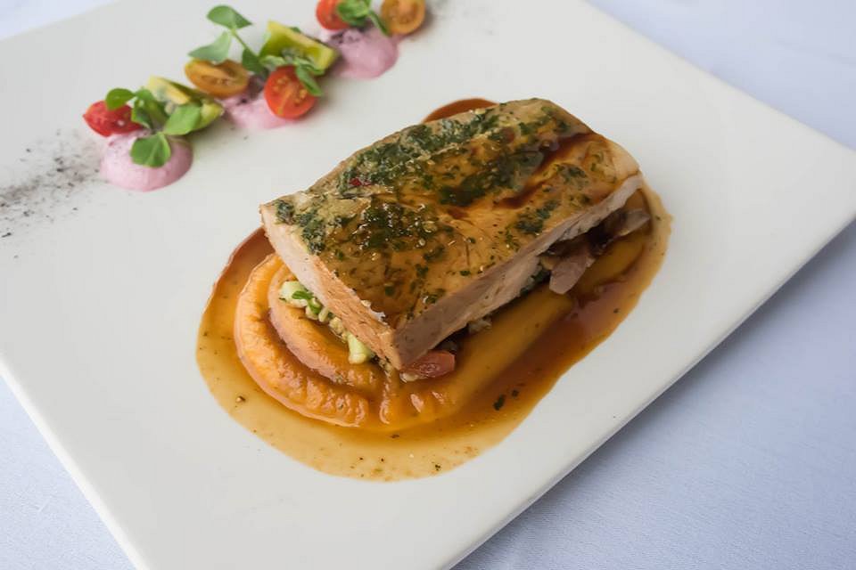 The Harissa Berkshire Pork was artistically presented with a separate row of tomato slices and pickled red cabbage yoghurt. The pork itself was generous in size and sat on top of naturally sweet, sweet potato puree. Hidden underneath the slab of meat was a colourful freekah and cashew tabouleh. It was light and refreshing, and you could see the middle eastern influences shining through.