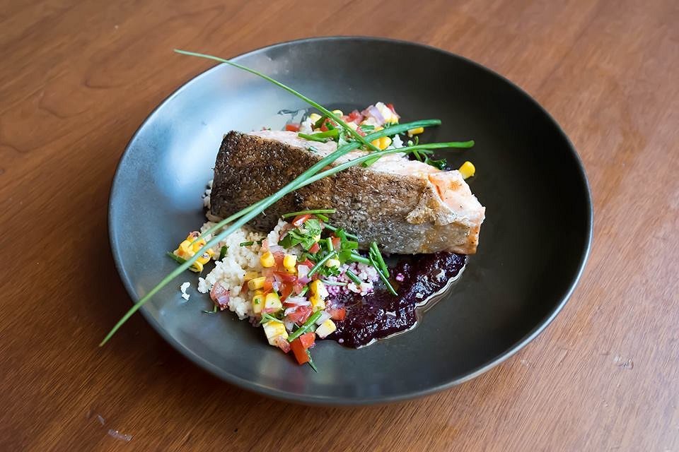 We then went onto the new school menu section where we tried the Crispy Atlantic Salmon with spiced beetroot puree, lemon cous cous, charred corn salsa and paprika. Fish is generally my least favourite item on a menu so it is not likely I would normally order this dish. But I am so glad that I was able to try this beautifully cooked Atlantic salmon. The salmon itself was pink, almost raw but as the fish was such a fresh, beautiful steak it could be eaten like this. The skin was salty and crispy and accompanied the soft cous and crunchy sweet corn. The gorgeous spices of salsa and paprika added a flavoursome element to the dish.