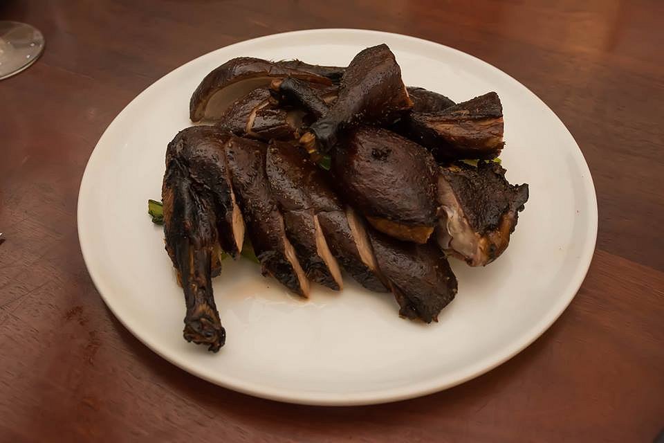 The second offer available is the Duck and Pinot. The dish includes a whole duck and two stunning glasses of Pinot Noir. The duck had been salted with prickly ash (sea salt and Szechuan Pepper), and then smoked and steamed. When the duck is completely cooled down it is split in half and brushed with ketsup manis and fried until the skin is crisp. As soon as the duck was bought to the table you could smell the smokey flavours of the crispy skin. The duck breast was absolutely divine and the skin was cooked to absolute perfection. The duck was served with steamed rice, Asian greens, Szechuan cucumber and a sticky date sauce. The sweet dates and thick sauce complimented the smokey duck flavours, and made a perfect combination. The Asian greens were very fresh, crunchy and paired well with all elements of the dish.
