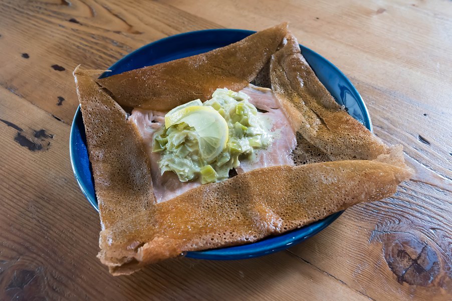The menu is divided into sweet and savoury with plenty of options to choose from. Their savoury crepes came highly recommended so that was exactly what I was going to have. I ordered the La Saumon which is a crepe with smoked salmon, creamy leeks and lemon. Not too long after ordering, the food arrived and I was told this is exactly how they’re presented over in France.