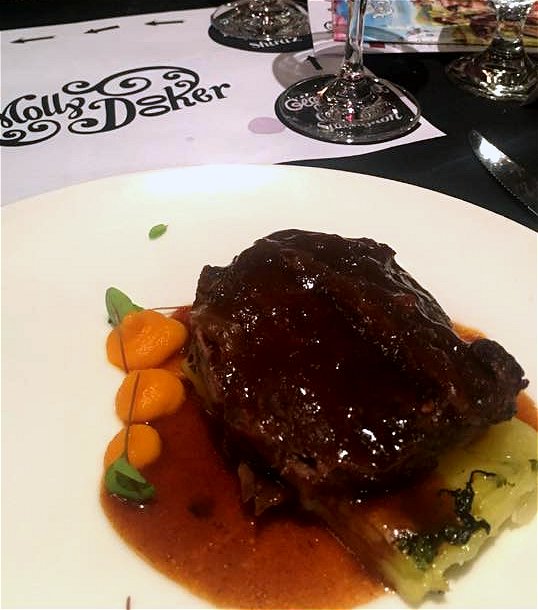 Starting the evening with a glass of NV Girl on the Go Sparkling Verdelho we are greeted by Luke of Mollydooker team with a left handed shake, Mollydooker after all is about being a lefty. A starter canapé of Pear, Prosciutto and Honey tart with Aged Gouda was an ideal accompaniment to the wine and a perfect start to the meal that was to come.
