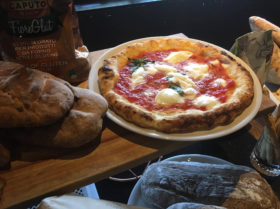Yesterday we attended Antica Pizzeria for the 2016 World Pizza Champion, Andrea Cozzolino’s Master Class. Using Caputo Flour, he showed us how to make a traditional Napoli pizza base as well as wholegrain and gluten free bases.
