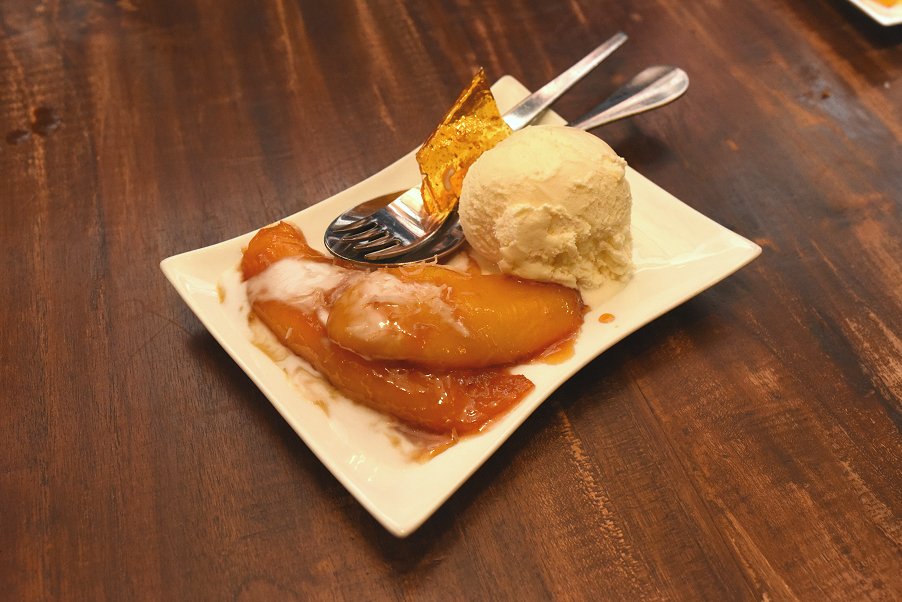 The pick of the desserts was the Grilled Mango Cheeks. Covered in lime juice and palm sugar, the mango cheeks are grilled to a light golden brown. A fruit that is naturally sweet all of a sudden takes on a slightly different flavour profile when grilled. The delicious smooth and creamy vanilla ice cream compliments the natural sweetness of the fruit.