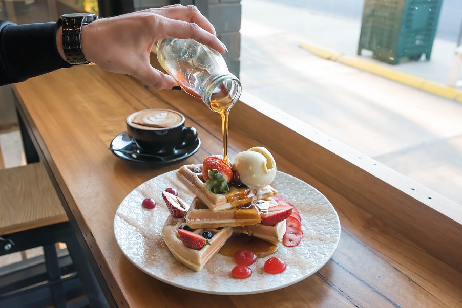 Next were the signature Donut Waffles which were served with all the sweet stuff. The waffles were freshly made, and their texture was light and fluffy. Strawberries and berries were present to add sweetness, and ice cream and maple syrup were thrown in to keep it that way.