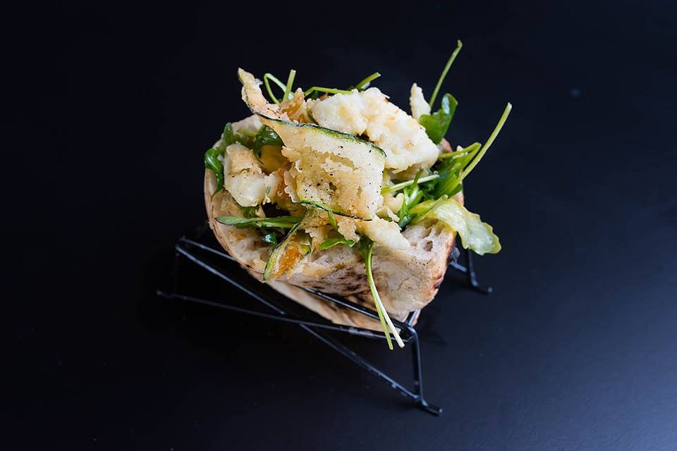 The Fried Calamari and Zucchini delightfully merges Italian cooking with lightly battered calamari that’s been fried to perfection. Rocket is mixed throughout the pocket that provides a fresh balance to the meal; mixed in with a slightly heated mayo that really makes this seafood combination work in harmony.