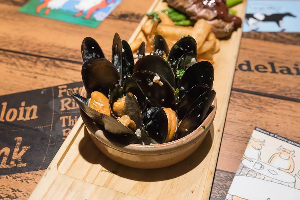 The other part of the second course was the South Australian Black Mussels with garlic and white wine sauce served with Little Creatures Pilsner. The mussels were perfectly cooked, and when dipped into the sauce, was like a match made in heaven. The Pilsner was essentially a clean, light beer which was perfect for refreshing the palate.