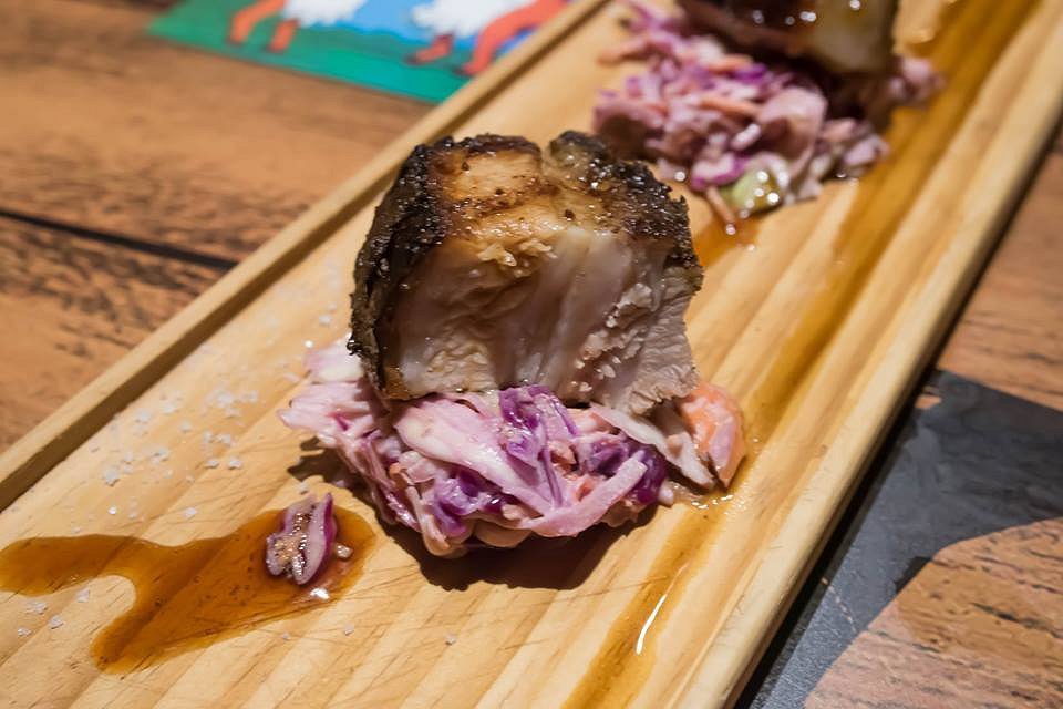 The Jerk Style Pork Belly with La Boca Slaw was served with the James Squire Chancer. There’s nothing better than freshly cooked pork belly. The meat was well seasoned and simply melted in your mouth. The slaw was adequately dressed and added a nice crunchy component. Everyone knows that pork goes really well with fruit. In the case of the Chancer, the fruity tropical aroma of the beer was a perfect match with the pork.