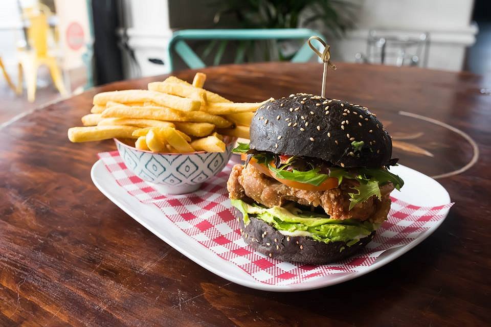 Crunchy Chicken Burger – lightly battered and golden brown tender chicken rests on a modern black nero brioche bun for a unique take on the pub classic. Packed in with smooth and creamy avocado, this sensational burger is settled on a bed of fresh salad and drizzled with wasabi aioli.