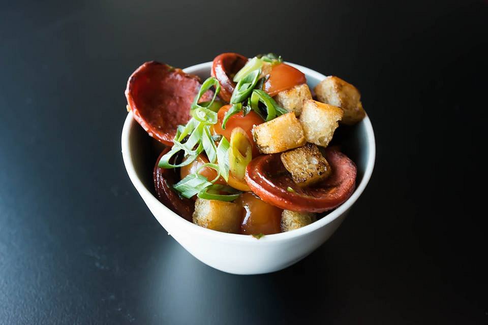 Sucuk – (pronounced Sujuk) presents chargrilled mildly spicy Turkish sausage with Turkish croutons, heirloom cherry tomatoes and green onion for a truly unique addition to your tapas spread.