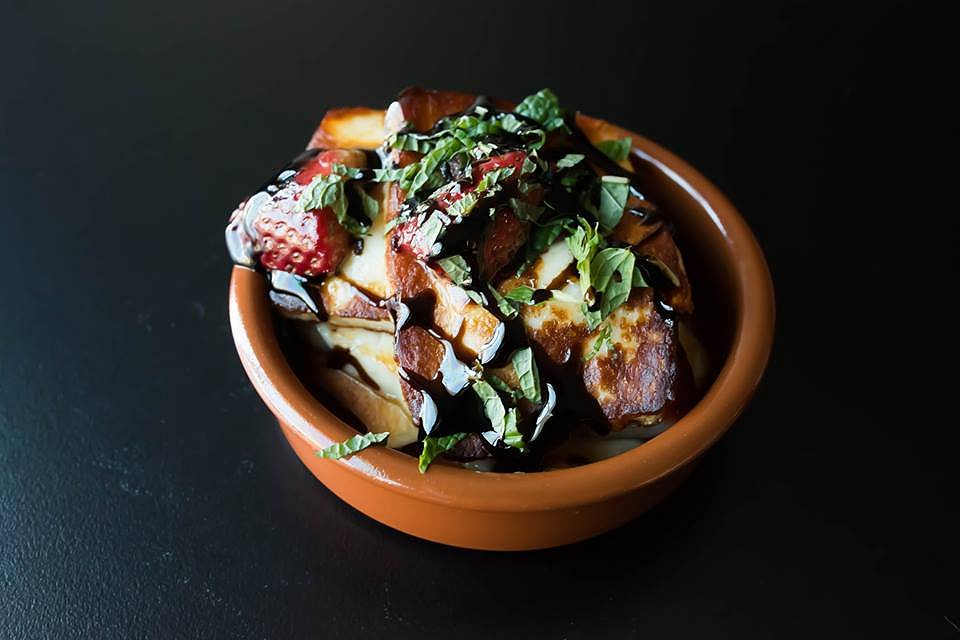 Haloumi – drizzled in balsamic glaze and topped with sweet strawberries, the pan fried Halloumi combines sweet and savoury with a generous serving of slightly salty Haloumi cheese.